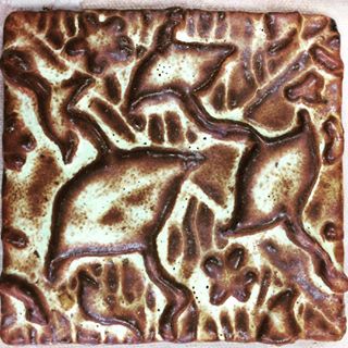 I realized that the module concept could work well with a relief tile. With the help of ceramics instructor, Kate Murray, I plunged into a new medium and started designing relief tiles with the idea of making multiples and eventually installations.